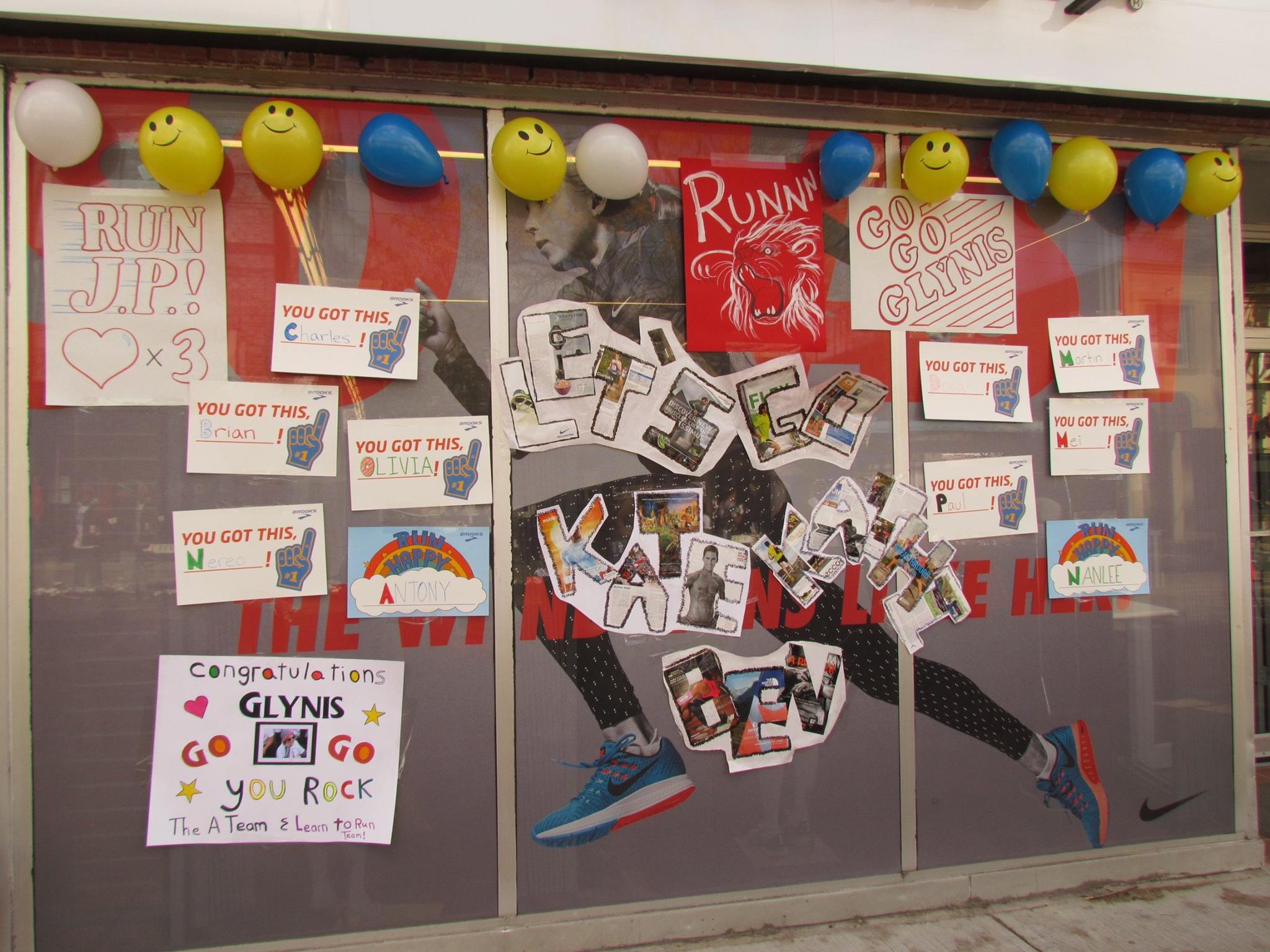 The Beaches Running Room store was covered in signs congratulating and cheering on their runners (including me!). Photo courtesy of Beaches Running Room.